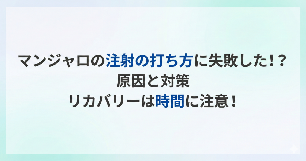 この記事では、マンジャロの失敗を4つのタイプに分類し、それぞれの判断基準と具体的な対処方法を解説していきます。医師とともに安全に治療を続けていくための判断材料として、ぜひ役立ててください。