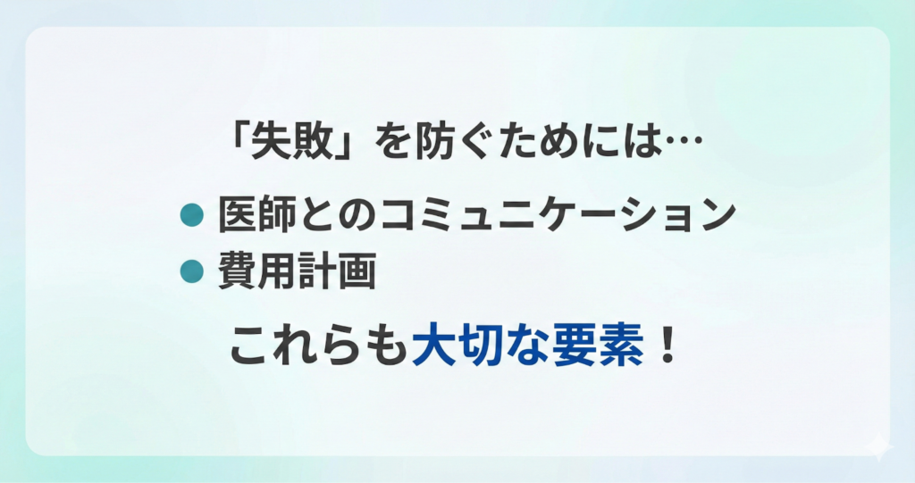 医師とのコミュニケーションや費用計画も失敗を防ぐために重要